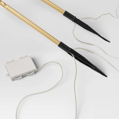 Add a bit of sparkle and shine to your Christmas decor with this LED Gold Starburst Christmas Novelty Sculpture Light from Wondershop™. This novelty Christmas sculpture set features a gold starburst tree embedded with 96 warm white LED lights to instantly brighten up your festive space. Plus, it includes ground stakes for easy and secure placement. Place this starburst novelty decoration set on your front yard or patio, or in your living room to add a fun, festive vibe to your space.